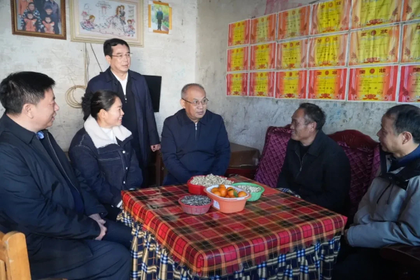在吉庆镇坪塘村,潘碧灵一行看望了省政协办公厅驻坪塘村乡村振兴工作队队员,实地考察水利设施建设、特色产业基地情况,并与工作队、县乡村干部及群众代表座谈交流,认真听取驻村工作情况介绍,就下一步工作思路交流意见。潘碧灵充分肯定驻村工作队现阶段的工作成效。他表示,要深入学习贯彻习近平总书记关于“三农”工作的重要论述,锚定农业农村现代化,扎实推动乡村全面振兴;要夯实发展基础,聚焦群众急难愁盼问题,抓好基础设施建设;要以产业为重点,激活农文旅融合发展内生动力;要充分利用现有资源,挖掘并培育乡村振兴带头人,提高村民整体素质,留下一支“带不走的工作队”;要立足本地实际,整合各类资源,打造具有示范意义的乡村振兴样本;要高度重视反电诈工作,强化宣传引导和防范治理,切实守护好群众的财产安全。