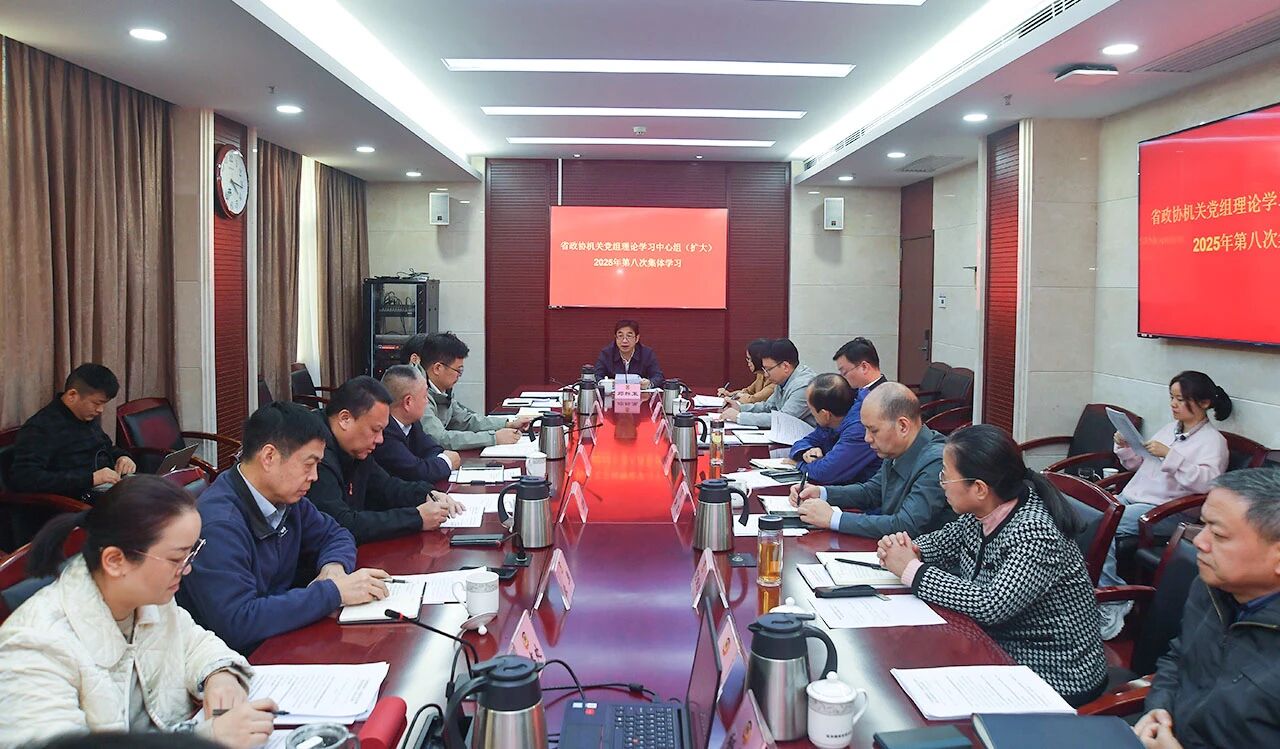 10月23日下午,省政协党组成员、秘书长、机关党组书记邓群策主持省政协机关党组理论学习中心组(扩大)2025年第八次集体学习,深入学习《习近平谈治国理政》第五卷以及习近平经济思想。
